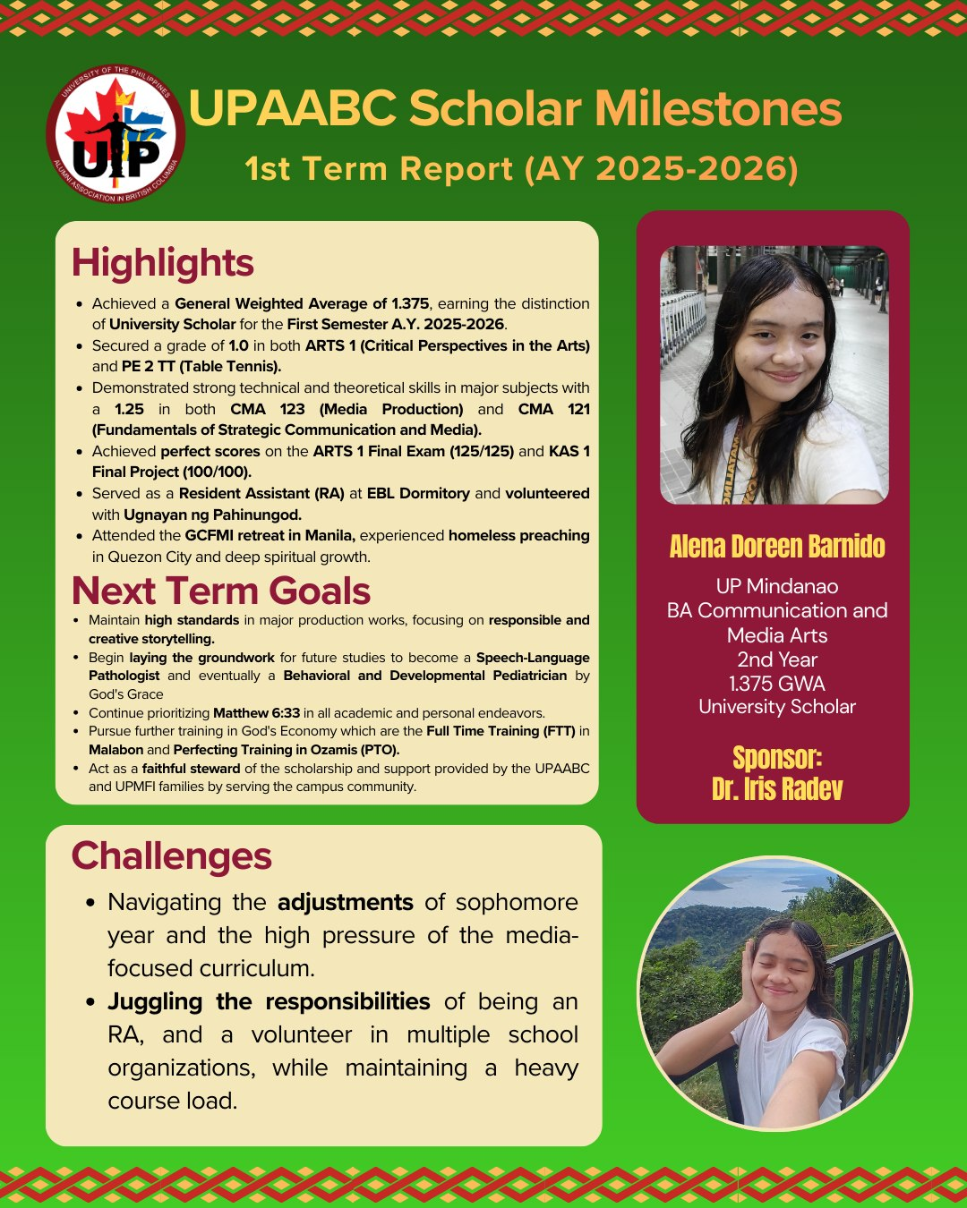 What a thrill for a UPAABC scholar from UP Mindanao to meet her sponsor, Dr. Iris Radev, in person! The scholar, Alena Barnido, was so excited to ride the plane...